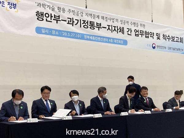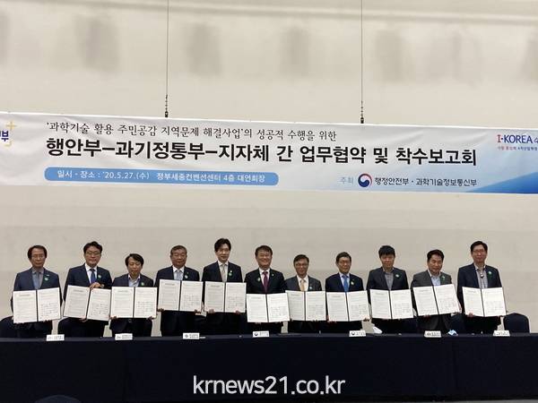 고양시(시장 이재준)는 행정안전부(이하 행안부)와 과학기술정보통신부(이하 과기정통부)가 부처협업 사업으로 추진한 ‘과학기술 활용 주민공감 지역문제 해결사업’ 10개 과제에 선정돼 사업의 성공적 수행을 위해 27일 행안부-과기정통부-과제수행 지자체간 업무협약(MOU)을 체결했다고 밝혔다.