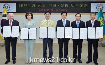 대전시는 27일 오후 3시 시청 중회의실에서 충남대, 한밭대, 배재대, 우송대 등 철도관련 주요 대학, 도시철도 운영기관인 대전도시철도공사와 ‘대전 트램의 성공적 건설을 위한 상호협력 업무협약’을 체결했다.