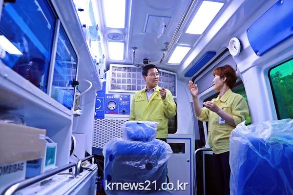 시 보건소는 지난 4월 초 코로나19 환자 및 검체 이송 등을 위해 조달청을 통한 구매에 나섰으며, 오늘(3일) 차량을 인도받았다.