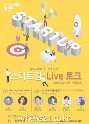 ▲ [사진=홍보포스터]부산시(시장 권한대행 변성완)는 6월 4일 오전 11시 30분 해운대 누리마루에서 국내 최대 스타트업 공동 단체인 (사)코리아스타트업 포럼(의장 김슬아·안성우·이승건)과 대한민국 창업생태계 발전과 스타트업의 혁신성장 지원을 위한 업무협약을 체결한다고 밝혔다.