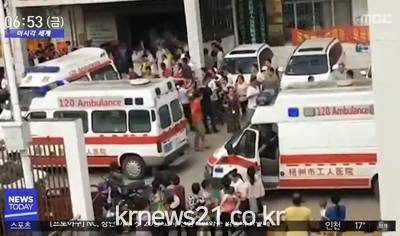 ▲ [사진출처 = MBC뉴스 캡처]중국의 한 초등학교에서 50대 경비원이 흉기를 휘둘러 학생과 교직원 등 39명이 다치는 사건이 발생했다.