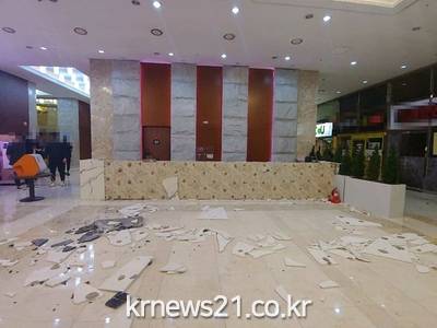 ▲ [사진제공 = 부산경찰청]부산 해운대의 한 호텔에서 용역업체 직원들이 대리석을 부수는 등 난동을 일으켰다 경찰에 붙잡혔다. 운영권 인수 문제를 두고 기존 용역업체와 시비가 붙은 이유 때문이었다.