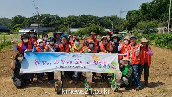 김정인 원신동장은 “지역의 소외된 이웃을 위해 나눔을 실천해 주신 주민자치위원회에 감사드린다”며 “더운 날 땀을 흘리며 정성껏 콩을 심은 만큼 많은 콩을 수확해 이웃에게 풍성하게 사랑을 전달할 수 있기를 소망한다”고 전했다.