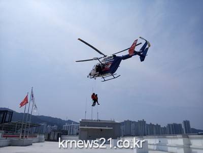 이날 훈련은 지상 구조대와 항공대의 유기적인 협조를 통해 현장 대응능력을 높이고 고층건물 재난 발생 시 신속한 대응으로 인명피해를 최소화하기 위해 실시됐다.
