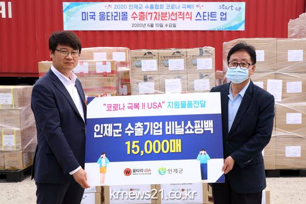 군은 10일 북면 원통농공단지 대륭영농조합법인 주차장에서 최상기 인제군수, 김상만 인제군의장 및 의원, 윤용문 농협중앙회 인제군지부장,김현동 인제군수출협회장, 임양원 울타리 USA 한국법인지사장, 정재필 인제군 마케팅센터장, 최종국 황태가공 수출업체 대륭 대표 등 관내 8개 업체가 참석한 가운데 올해‘미국 LA 7차 수출 선적식’을 개최했다.