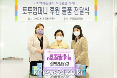 구청장실에서 열린 이번 전달식에는 토투컴퍼니 남수미 대표, 지역아동센터연합회 이재현 회장 및 관련 부서장들이 참석한 가운데 진행되었으며, 후원품을 전달받은 지역아동센터 연합회는 관내 지역아동센터 아동들에게 전달할 예정이다.
