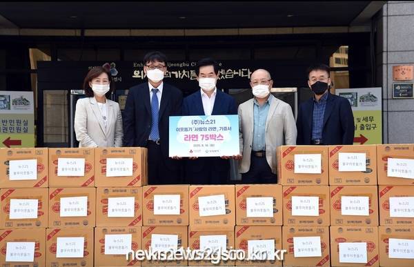 뉴스21통신(대표 이성재)은 6월 16일 의정부시청을 방문해 관내 소외된 이웃들을 위한 사랑의 라면 75상자를 기탁했다.