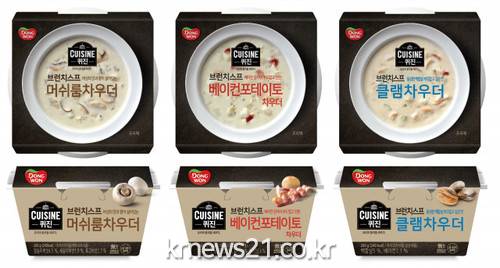 ▲ [이미지제공 = 동원F&B]동원F&B(대표이사 김재옥)가 서양식 프리미엄 가정간편식(HMR) ‘퀴진 브런치수프’ 3종(머쉬룸 차우더, 베이컨포테이터 차우더, 클램 차우더)을 출시했다.