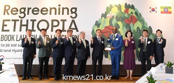 ▲ [사진제공 = 산림청]산림청(청장 박종호)은 한국과 에티오피아의 산림 분야 협력을 체계화하기 위해 환경산림기후변화위원회(EFCCC)와 함께 제작한 영문 책자 에티오피아 재녹화(Re-greening Ethiopia)의 출판기념회와 녹색성장과 세계적 목표 2030을 위한 연대(P4G) 협력사업 협약식을 6월 17일 그랜드 하얏트 서울 호텔에서 개최했다.