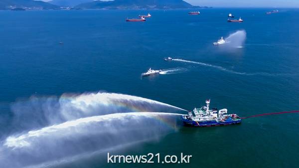 약 50명의 인력이 참여한 가운데, 광양항을 출항하여 항해하던 유조선이 암초에 충돌하여