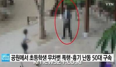 ▲ [사진출처 = YTN 뉴스 캡처]시끄럽다는 이유로 어린이공원에서 초등학생을 마구 폭행하고 주변 시민들에게 흉기를 휘두른 50대 남성이 구속 송치됐다.