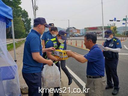 월곶면지역발전협의회는 최근 접경지역 주민들의 불안감을 조성하는 대북전단 살포로 지역 내 긴장감이 고조되고 있는 가운데 지난 달 29일 대북전단 살포 저지를 위해 수고가 많은 관내·외 경찰 직원들을 격려하기 위해 월곶면 내 6개 초소와 월곶 파출소(소장 박영순)를 방문해 빵과 음료를 전달하며 위로 격려했다.