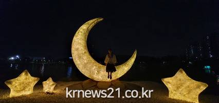 호수공원 내 꽃 마당에 위치한 초승달 조형물은 주변에 크기가 다른 별 조형물을 함께 배치했으며 가우라 28,500본도 식재해 경관미를 더했다.