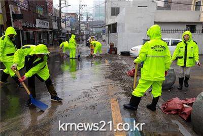 ▲ [사진제공 = 부산시]부산지역에 새벽부터 시간당 50mm 내외의 강한 집중호우가 이어지며 피해가 속출하자 부산시(시장 권한대행 변성완)가 발 빠른 대처에 나섰다.