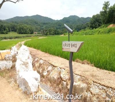 시는 소뚝도랑 사업으로 조성된 산책로를 중심으로 기존 논과 논 사이, 논․밭 사이, 마을 뒷동산인 팔성산을 연결는 산책로에 2천8백만원의 예산을 투입 산책로 정비, 둘레길 안내판 과 방향표지판 등을 설치 둘레길 3개 코스 총 연장 9.3km를 완성했다.