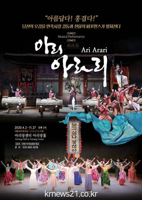 ▲ [사진=홍보포스터]뮤지컬 퍼포먼스 ‘아리 아라리’가 코로나19로부터 안전한 관람을 위해 두 좌석 띄어 앉기, 열 감지, 손 소독 등 철저한 방역 속에 공연을 재개했다.