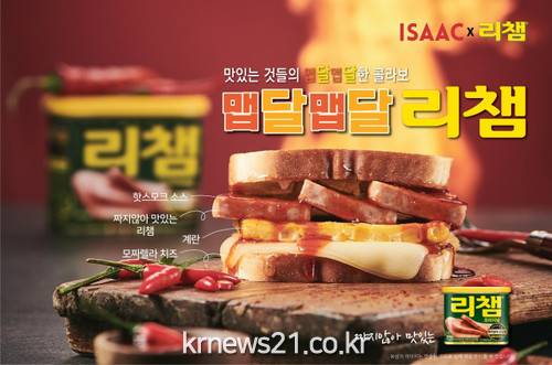▲ [이미지제공 = 동원F&B]동원F&B(대표이사 김재옥)의 프리미엄 캔햄 ‘리챔’이 국내 1위 토스트 프랜차이즈 ‘이삭토스트’와 컬래버를 통해 토스트 신메뉴 ‘맵달맵달 리챔’을 출시했다.