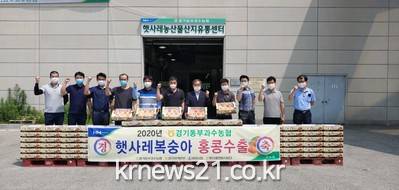 ▲ [사진제공 = 이천시]이천시(시장 엄태준)는 지역 대표적 농특산품 중 하나인 햇사레 복숭아가 16일 홍콩으로 올해 첫 수출길에 올랐다고 밝혔다.