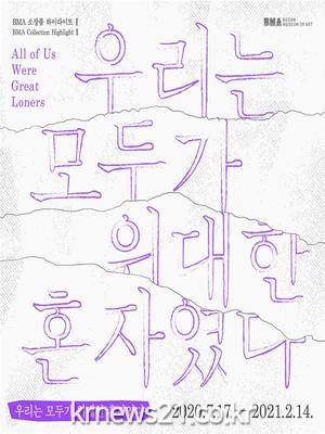 카이의 오디오 가이드로 감상할 수 있는 이번 BMA하이라이트Ⅱ전시 <우리는 모두가 위대한 혼자였다>는 미술관 소장품 중 2000년대 전후의 국내외 인물화 20여 점이 소개된다. 작품 제목은 기형도 시인의 시 구절에서 가져왔으며, 작품 속 ‘인간’의 모습들은 시대상을 반영하고 인간 존재에 대한 성찰과 세상에 대한 의지를 보여준다. 코로나19로 인해 우리 사회를 다시 바라보고 희망을 품어야보는 시기에 예술과 인문학으로 우리의 모습을 되짚어보기에 도움이 되는 전시가 될 것이다.