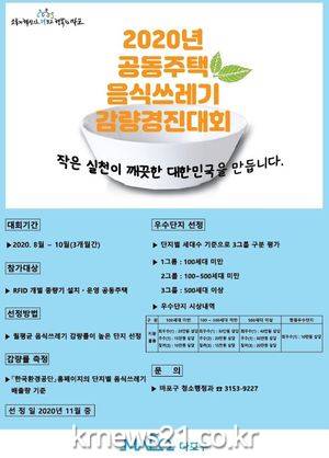구는 9월 중간점검 및 현장점검, 11월 감량우수단지 선정 및 인센티브 제공, 12월 감량우수단지 표창을 실시할 예정이다.