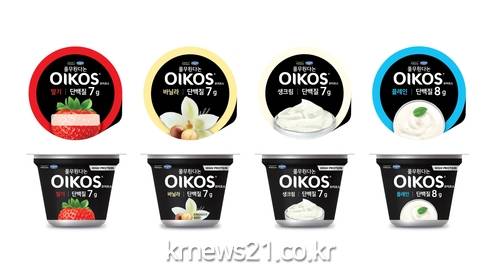‘오이코스(OIKOS)’는 플레인 제품 1컵(100g) 기준으로 계란 1.3개에 해당하는 8g의 풍부한 단백질을 빠르고 간편하게 떠먹을 수 있어 섭취 편의성이 높다.
