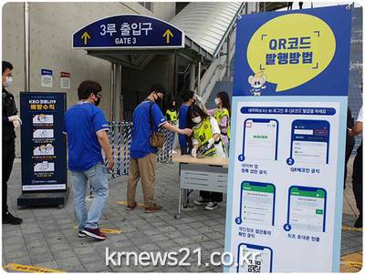 또한 입장은 3개 주출입구당(1루, 3루, 외야측) 3열로 가능하며, 열화상카메라 및 비접촉식 체온계로 발열 검사를 실시하고, 매표소·화장실·매점 등에 1m 거리 유지를 위한 스티커를 부착한다.