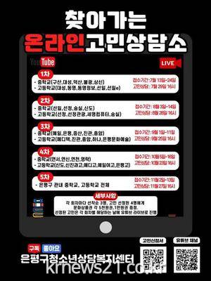▲ [사진=홍보포스터]은평구(구청장 김미경)청소년상담복지센터는 올해 7월부터 11월까지 위기청소년 지원사업의 일환으로 ‘학교 온라인 고민 상담소’를 오픈한다.