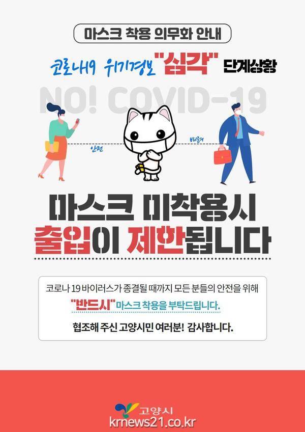 먼저 단기 공공일자리 사업인 ‘고양 희망알바 6000’ 인력을 활용해 대형마트, 전통시장 등에서 홍보활동을 추진한다. 또한 복지시설, 종교시설, 대중교통, 음식점 등 많은 사람들이 모이는 장소 중심으로 집중적인 계도활동도 펼친다.