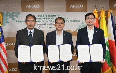▲ [사진제공 = 산림청]산림청(청장 박종호)은 8.11(화) 서울 여의도 소재 아시아산림협력기구 사무국에서 한국국제보건의료재단·아시아산림협력기구와 「기후변화 및 코로나19 이후시대 보건의료?산림 국제협력 분야에서의 미래지향적 상호 협력」을 위해 업무협약(MoU)을 체결하였다.