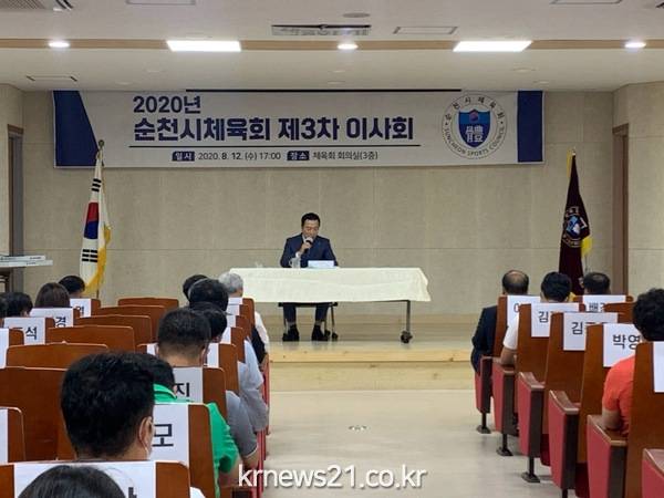 순천시체육회(회장 이상대)는 순천시체육회 회의실에서 지난 12일 제3차 이사회를 개최하고 민선체육회장 이후 새로운 신임 이사진에게 위촉장을 전달했다.
