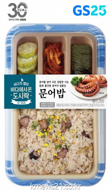 GS25가 문어 원물과 국내산 쌀을 함께 넣고 특수 취반 공법으로 구현한 문어밥도시락은 밥에서 느껴지는 문어의 풍미와 토핑된 문어의 쫄깃함 식감이 일품이다.