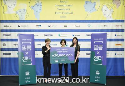 이날 한국양성평등교육진흥원 나윤경 원장은 <자매들의 밤> 김보람 감독, <백야>염문경 감독에게 시상과 함께 제작지원금 각 2000만원을 전달했다. 수상작 두 작품은 각각 친족에 의한 성폭력, 위력에 의한 성폭력에 대한 깊은 통찰을 수준 높은 스토리텔링으로 풀어냈다는 평가를 받았으며, 지난해(38편)의 두 배가 넘는 총 85편이 출품된 이번 공모에서 두 작품은 42대 1의 경쟁률을 뚫고 최종 지원작으로 선정된 바 있다.