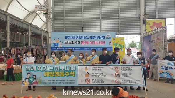 광양시는 지역 청년단체들이 21일 광양 5일장에서 ‘코로나19 예방 캠페인’을 실시했다고 밝혔다.