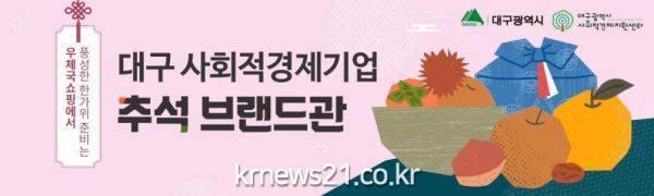 이번 온라인 추석 특판전은 9월 1일부터 오는 24일까지 우체국 쇼핑 내 ‘대구시 사회적경제기업 추석 브랜드관’을 통해 진행하고, 행사 기간 동안 전 품목에 대해 20% 할인 쿠폰을 발행해 소비자들이 대구 사회적경제기업의 우수한 제품을 저렴한 가격에 구매할 수 있도록 준비했다. 또 추석 특판전 기간 이후에도 오는 12월 10일까지 10% 할인 프로모션 행사를 운영한다.