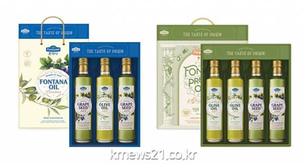 폰타나 프렌치 포도씨유는 엄선된 포도씨만을 사용하는 프랑스 140년 전통의 브로슈낭사 직수입 제품으로 풍부한 맛이 특징이며 산소 접촉을 차단하고 근사한 느낌을 주는 유리병을 사용해 명절뿐만 아니라 집들이 등 특별한 날에 선물하기 좋다. 명절 스테디셀러로 꼽히는 폰타나 프리미엄 오일 세트는 올리브색, 금색 등을 활용한 패키지로 고급스러움을 살렸으며 ‘폰타나 프리미엄 오일3호(올리브유 1병, 포도씨유 2병)’, ‘폰타나 프리미엄 오일4호(올리브유 2병, 포도씨유 2병)’로 구성됐다.