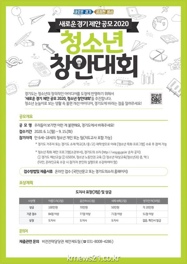 청소년 관점의 창의적인 정책 아이디어를 찾기 위한 ‘새로운 경기 제안 공모 2020, 청소년 창안대회’ 제안 접수가 오는 15일 마감된다.