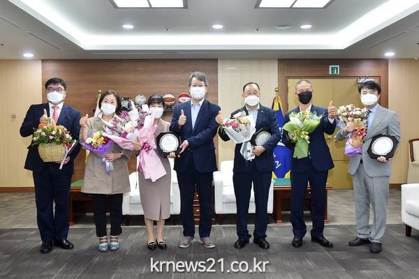 수상자들에 대한 시상은 오늘(15일) 오전 10시 30분 시청 7층 의전실에서 진행된다. 특히 올해는 코로나19 감염을 차단하기 위해 최소한의 인원만 참석한 채로 방역수칙을 철저하게 지키며 간소하게 이루어질 예정이다.