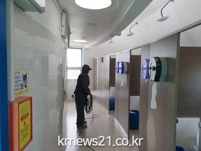 이번 특별방역은 이용객이 많은 공중, 개방화장실에서의 바이러스 전파를 차단하기 위해 소독용 약품으로 변기, 손잡이, 세면대 등은 물론, 공중화장실 내·외부 전체를 1회 소독 시 일정 시간을 두고 2회 이상 도포하는 방식으로 진행되고 있다.