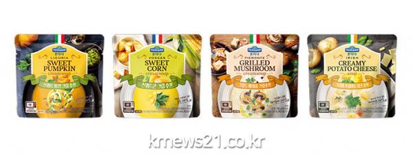 폰타나가 새롭게 선보인 신제품은 유럽 정통 루 방식과 지역 대표 원재료로 정통 홈메이드 수프 레시피를 구현했다. ‘그릴드 머쉬룸 크림 수프’, ‘스위트콘 크림 수프’, ‘스위트 펌킨 크림 수프, ‘크리미 포테이토 치즈 수프’ 등 총 4종으로 파우치째 전자레인지에 데우기만 하면 유럽 본고장의 특색이 담긴 고급스러운 수프 맛을 즐길 수 있다.