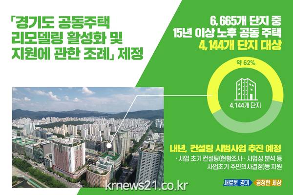 경기도가 15년 이상 된 노후 공동주택 리모델링 사업 활성화를 위해 자문단과 지원센터 등을 두고 사업 초기부터 시행까지 체계적 지원에 나선다.