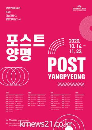 ▲ [사진=홍보포스터]양평군립미술관(관장 배동환)은 2020 미술여행-3, 가을프로젝트 양평신화 찾기-4 「포스트 양평」展 (2020.10.16.-11.22.)을 개최한다. 양평에서 활동 중인 포스트 아티스트를 발굴 및 초청하여 군민과 미술인들이 하나로 어우러져 양평문화예술의 확장과 존재적 가치의 공감을 공유하는 「포스트 양평」 전시 프로젝트다.