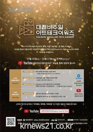 ▲ [사진=홍보포스터]대전시와 대전정보문화산업진흥원이 오는 16일과 17일 양일 간 ‘2020 대전 비주얼아트테크 어워즈’행사를 온택트(www.dva.or.kr)로 개최한다.