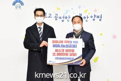 정동균 양평군수는 “모두가 힘든 시기에 이렇게 따뜻한 나눔을 실천해주신 ㈜와이지팩토리의 모든 관계자분들께 감사를 드리며, 기탁 받은 마스크는 양평군의 가장 필요한 분들에게 잘 전달하도록 하겠다”라고 감사의 인사를 전했다.