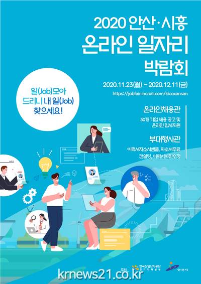 ▲ [사진=홍보포스터]안산시(시장 윤화섭)는 오는 23일부터 다음달 11일까지 2020 ‘안산·시흥 온라인 일자리 박람회’를 개최한다고 20일 밝혔다.