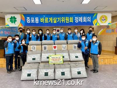 한편 이날 기부된 물품은 증포동 관내 저소득가정 20가정에게 전달될 예정이다.