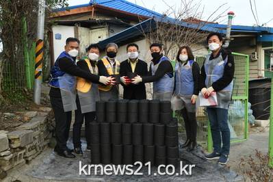 ▲ [사진제공 = 구리시]구리시(시장 안승남)는 지난 24일 강남 하나로 라이온스 클럽(회장 이신형) 회원들과 관계자들이 참석한 가운데, 관내 연탄을 사용하고 있는 취약계층 10가구에게 동절기를 대비하여 따뜻한 겨울나기에 도움이 될 수 있도록 연탄 2,000장 전달과 연탄 나눔 봉사를 실시했다.