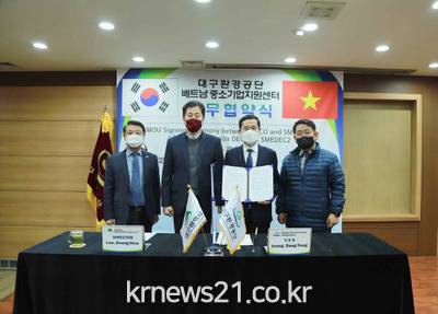 협약식에는 대구환경공단 정상용 이사장, 베트남 중소기업지원센터 응우옌 티 투 푸응 센터장을 비롯한 대구시 물에너지산업과 및 호찌민 사무소 관계자 등이 참석했다.