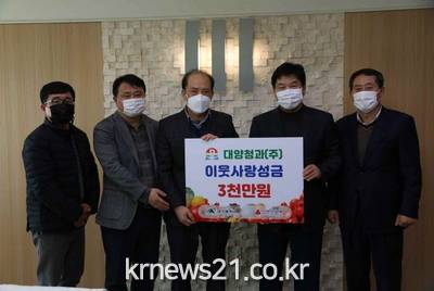 박기형 대양청과의 대표는 “코로나19로 어려움이 겹친 지역 독거노인들이 따듯한 겨울을 나는 데 도움이 되길 바란다”며, “앞으로도 지역 내 어려운 사람들을 위한 나눔실천을 지속해 나가겠다”고 밝혔다.