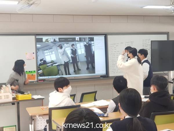 학교관계자는“두 학교는 2019년부터 교류하여 화상 수업을 하고 있으며, 올해는 1학년 학생들과 함께 각 나라의 문화 등에 관해 화상 수업을 하며 학생들에게 자연스러운 영어 습득 기회를 제공하고 영어 학습에 대한 동기를 부여하고 있다”라고 전했다.