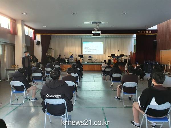 현동중학교(교장 임원영) 학생들은 11월 25일(수) 학교 강당에서 2학기 학교폭력 예방교육을 받았다. 1학기 학교폭력 예방교육에 이어 2학기에도 교육은 현동중 학생부장 이ОО 선생님이 담당하였다.